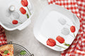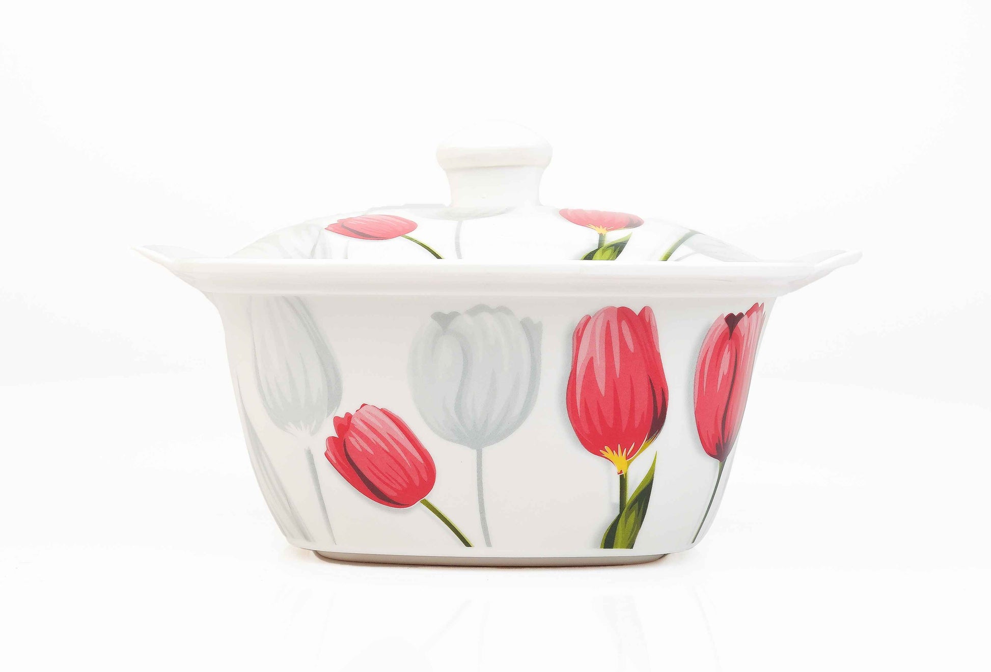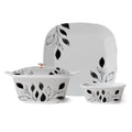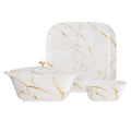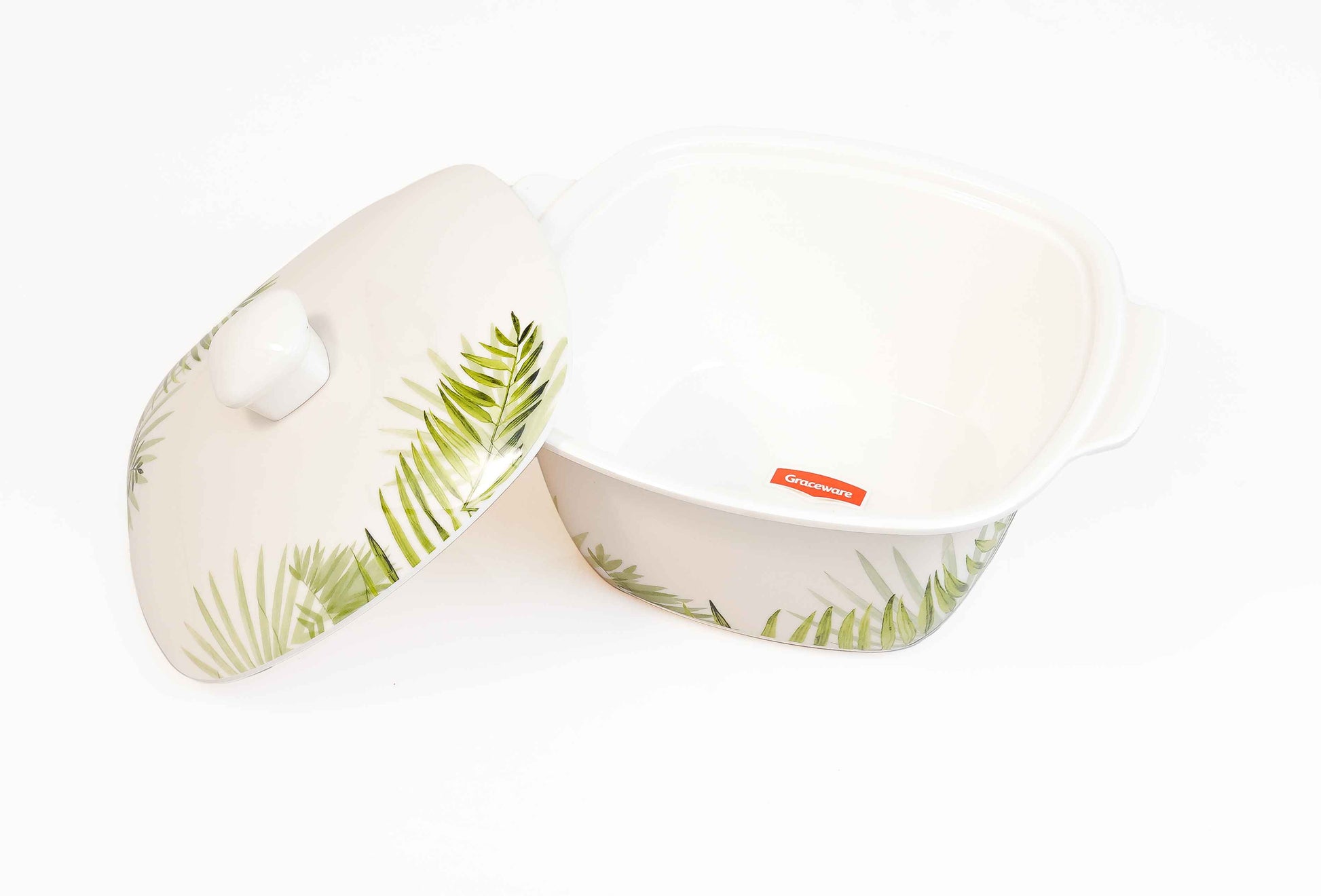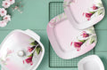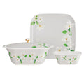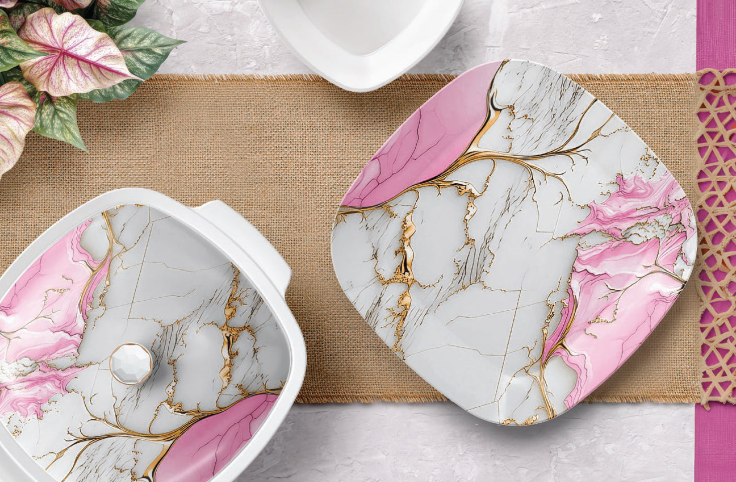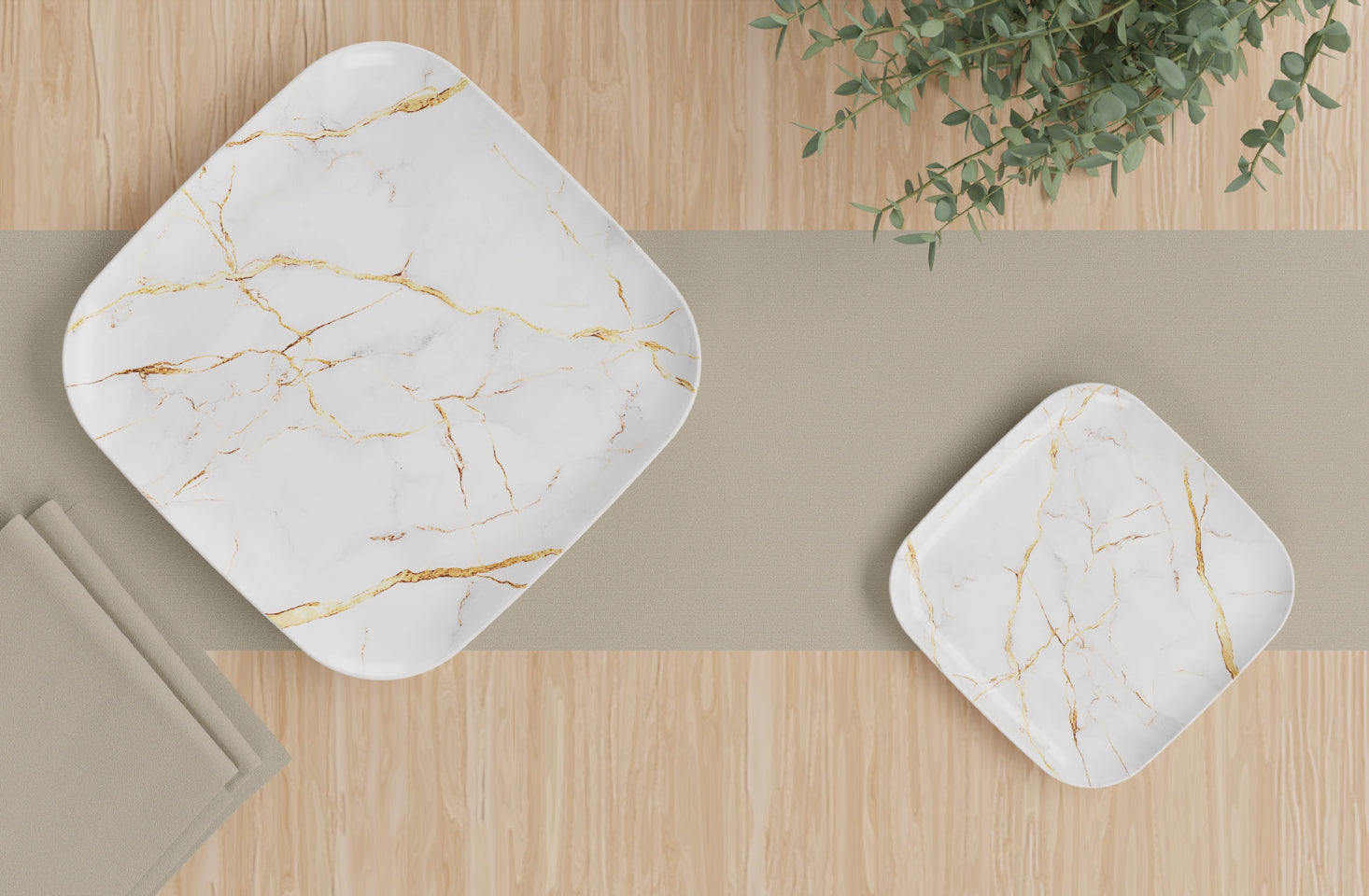 Stackable plates and bowls ensure convenience; taking up minimal storage space making it ideal for home display.