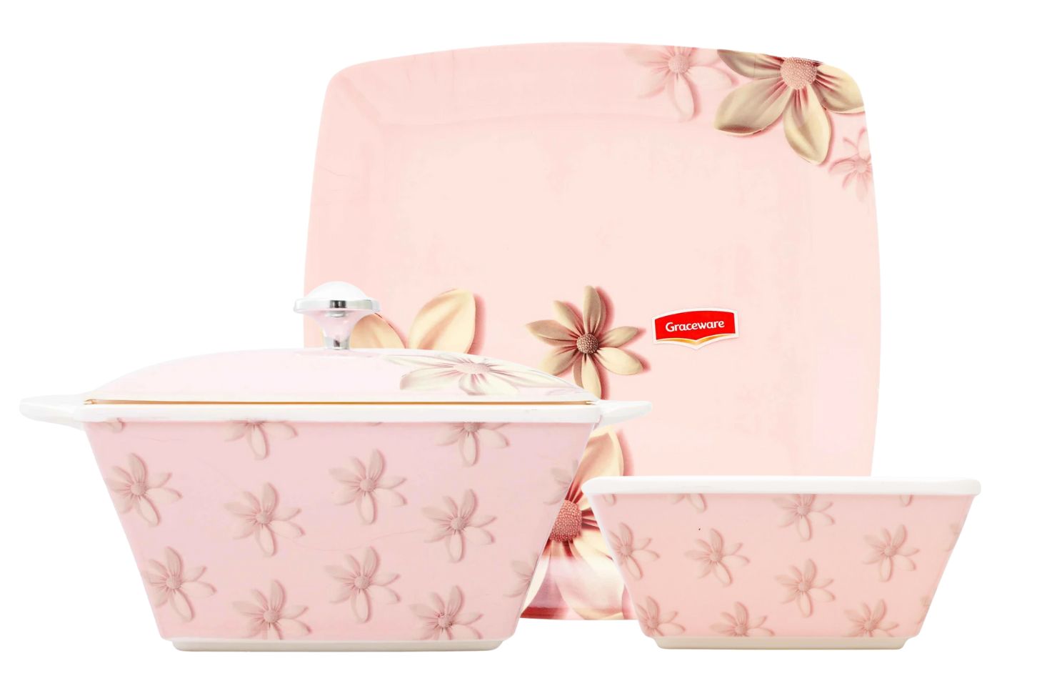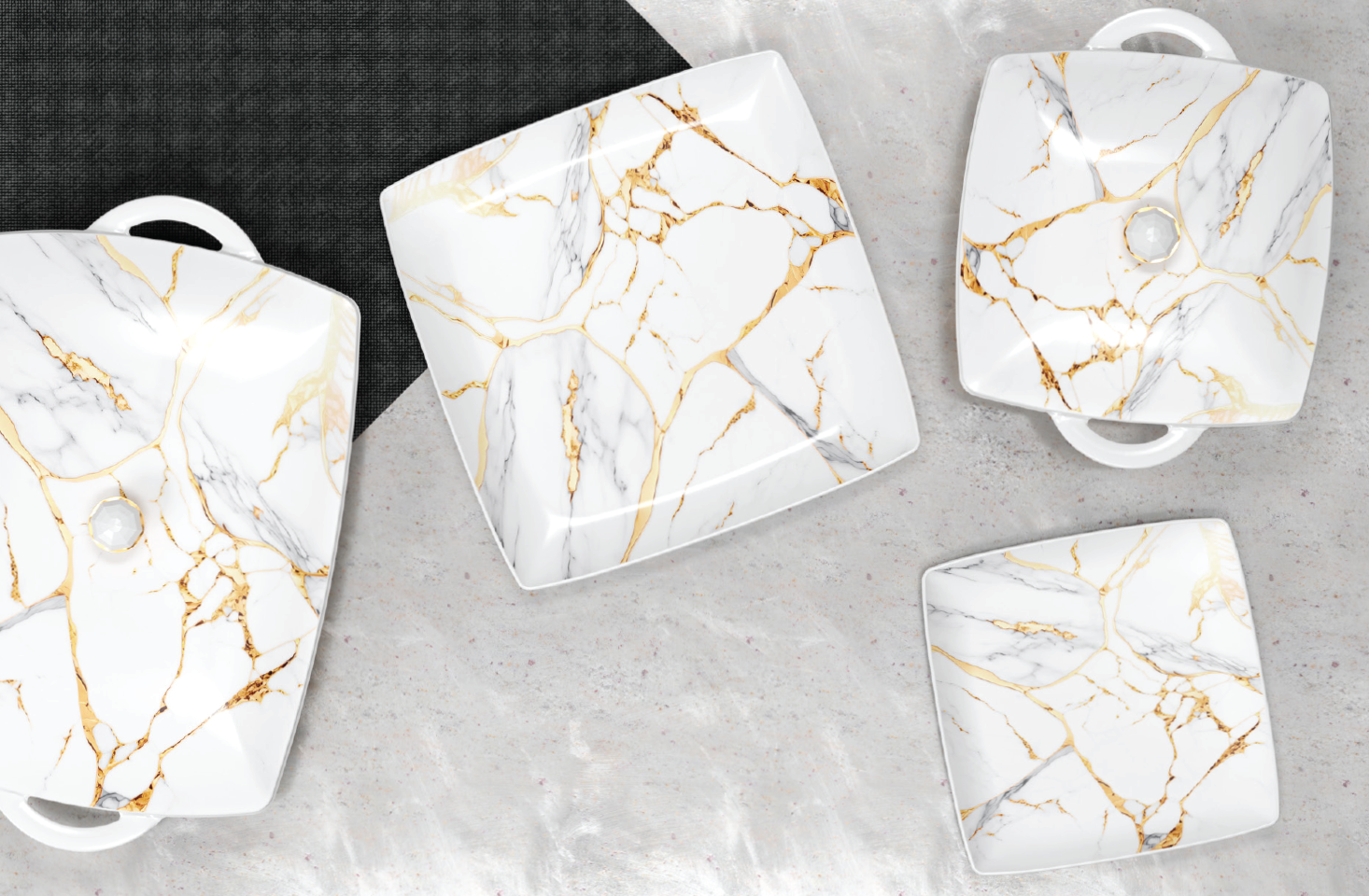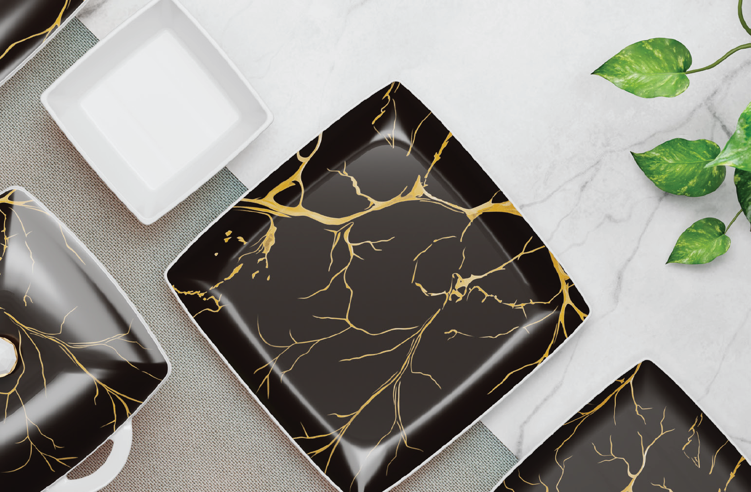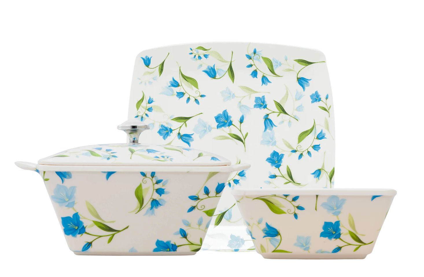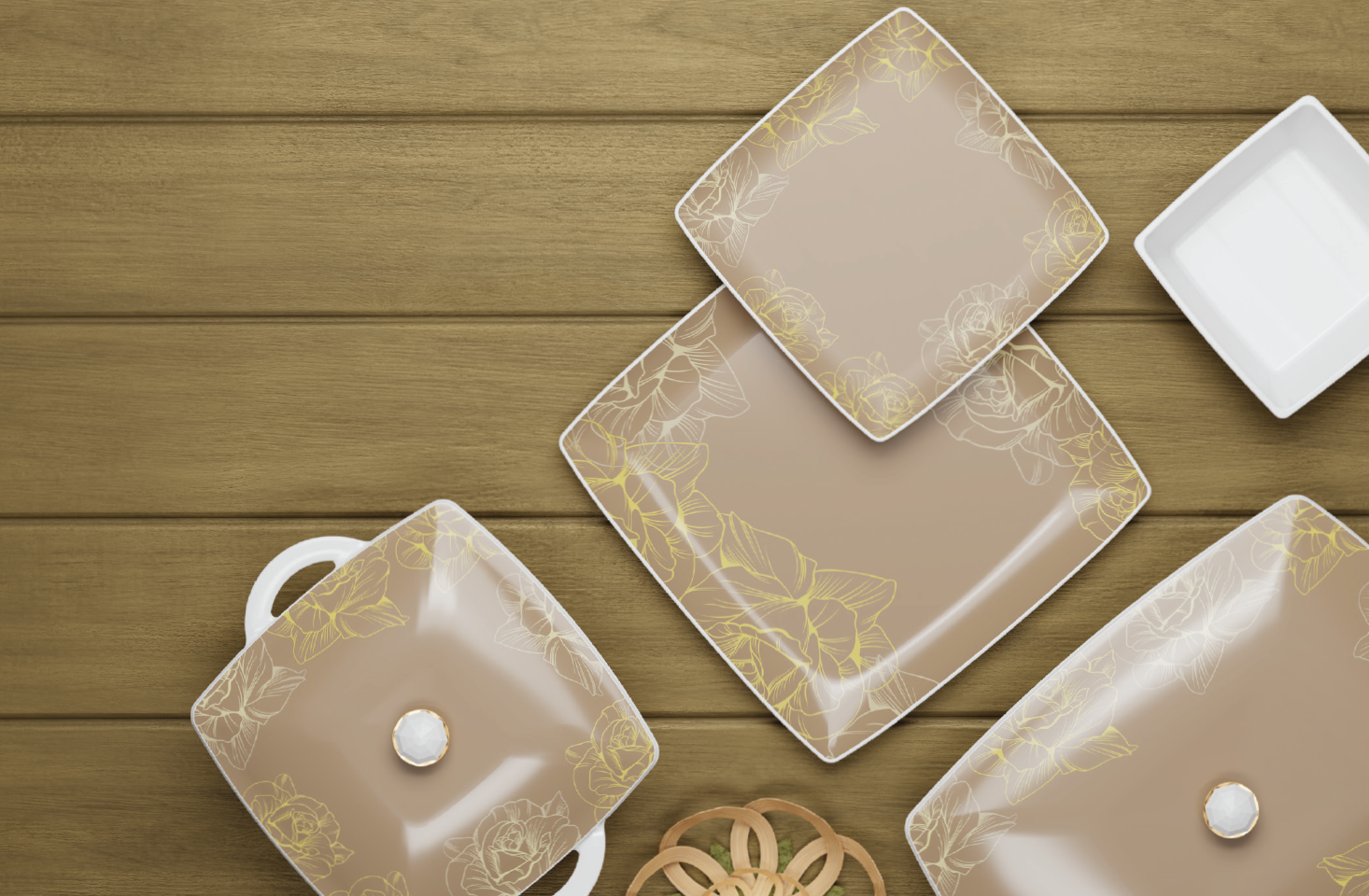 Stackable plates and bowls ensure convenience; taking up minimal storage space making it ideal for home display.